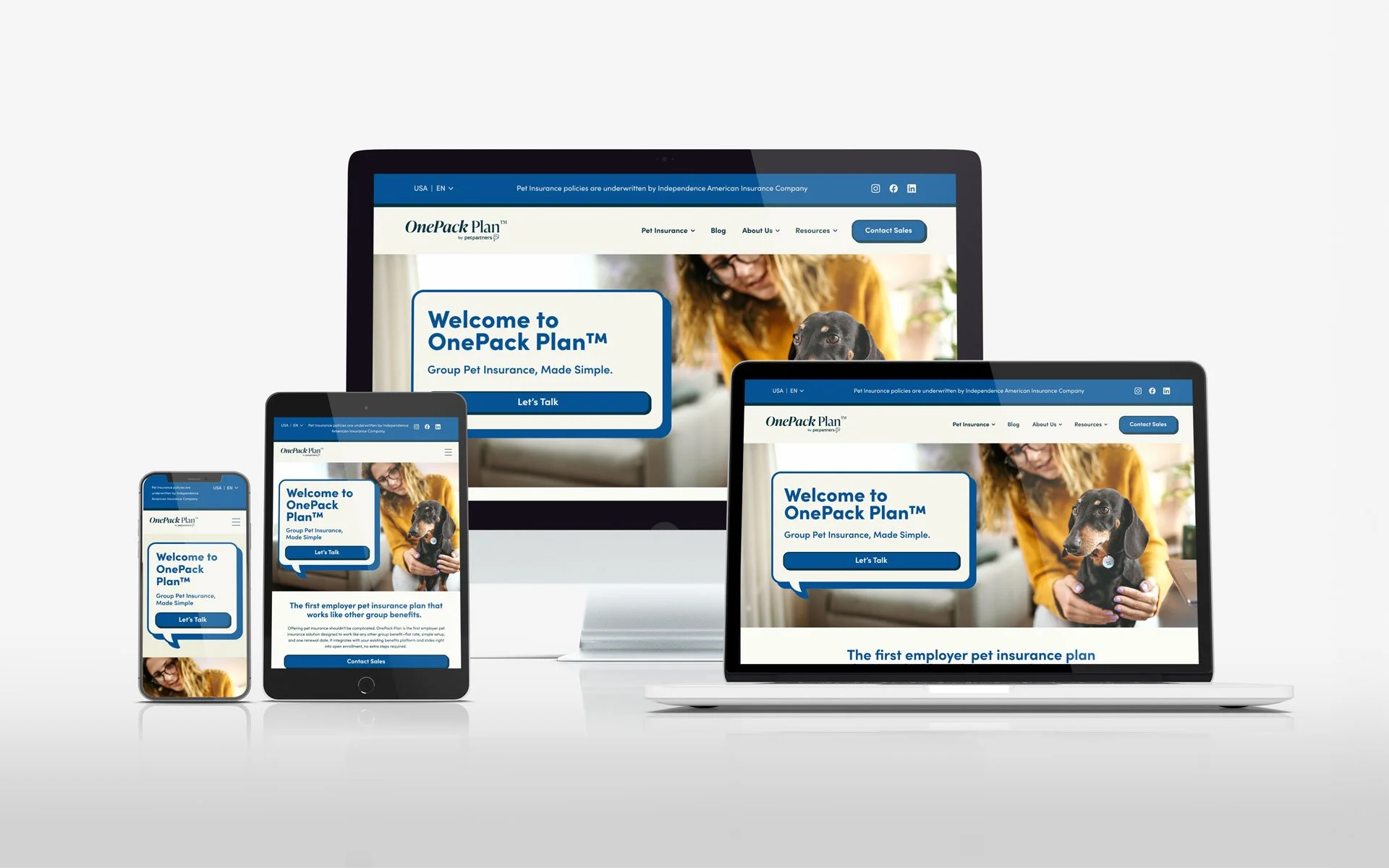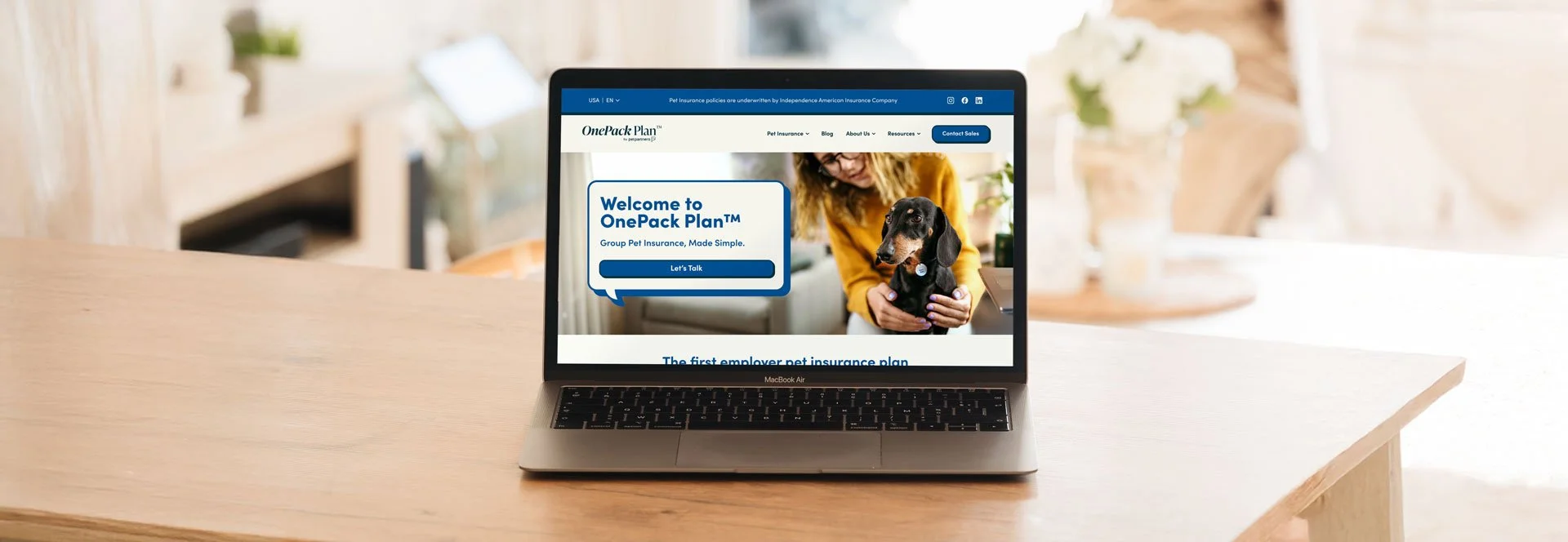 I designed a full set of landing pages for the OnePack Plan US website in Figma, including the homepage, Why Pet Insurance, For HR, For Brokers, For Employees, About Us, Contact Us, and Resources. The site was created to clearly communicate the value of pet insurance benefits to multiple audiences, with tailored messaging for HR professionals, employees, and brokers.