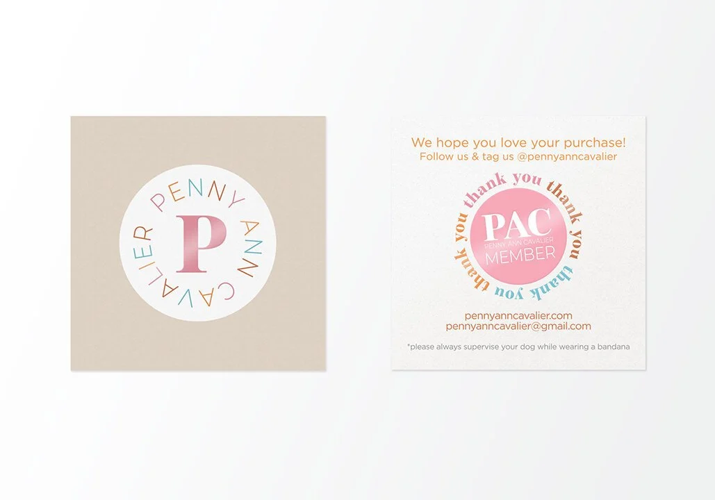 Complete branding and logo developed for my dog Penny's social media account. Bright colors and playful shapes have inspired her logo design. Her unique branding has also expanded into one-of-a-kind patterns and fabrics for items such as bandanas.